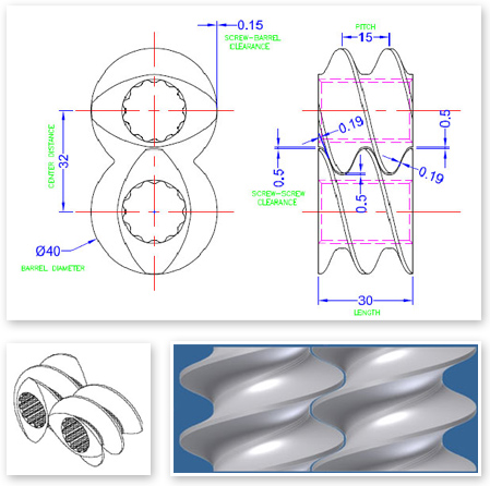 Для двухвинтовых сегментных систем это создает однонаправленные винтовые системы, разработанные в соответствии с различной полимерной структурой, которая вращается в одном и том же направлении, обеспечивает и выталкивает смесь пластиковых материалов внутри муфты.